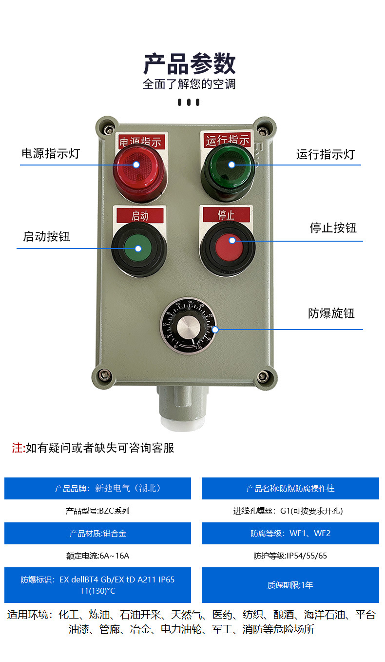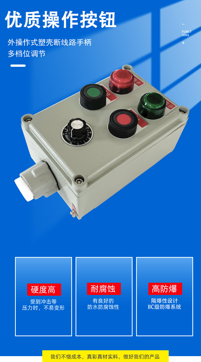 隔爆型外殼內裝元件可裝防爆按鈕、防爆元件、防爆信號燈、防爆轉換開關及防爆儀表等防爆元件和交流接觸器、熱繼電器、溫控器及各種功能模塊等普通電器元件;增安型外殼內裝按鈕、控制開關、儀表等均為防爆元件。