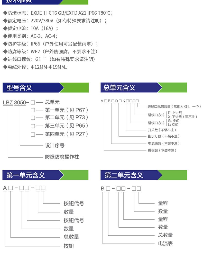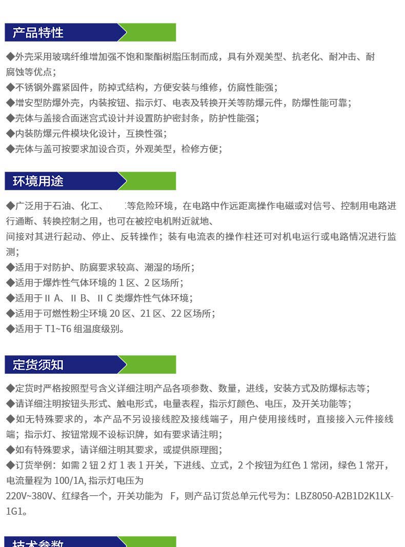 BXK8050系列防爆防腐控制箱適用于交流50Hz、220、380V,直流電壓至220V線路中,遠距離集中控制多臺電動機的啟動與停止;
