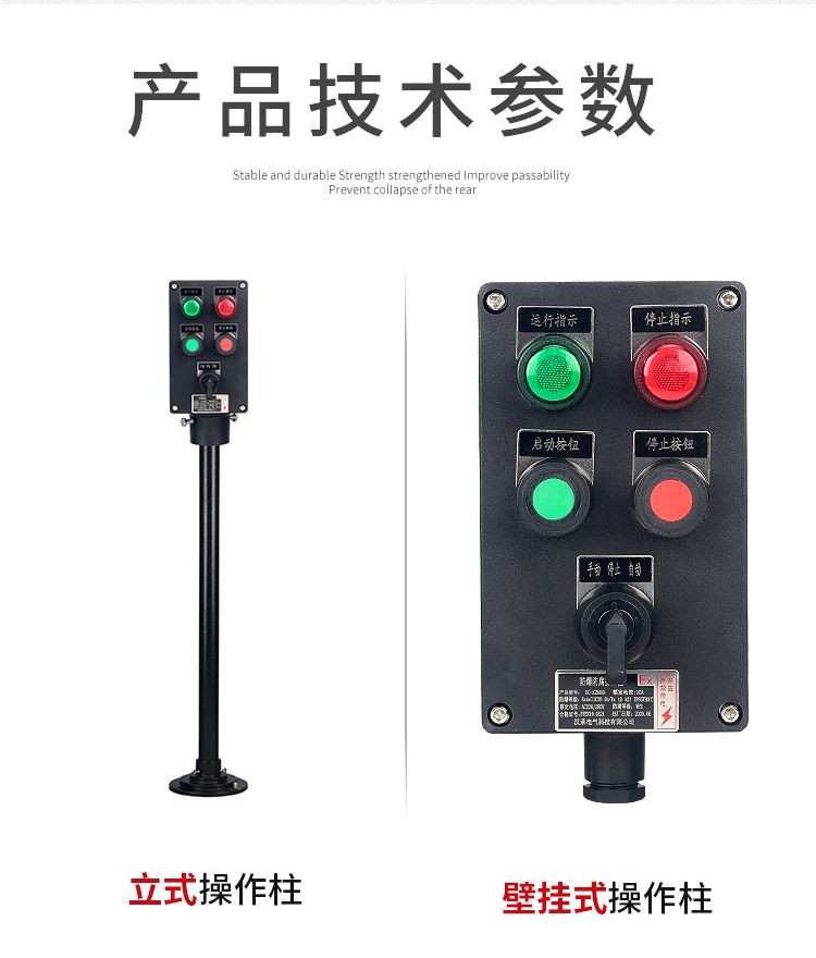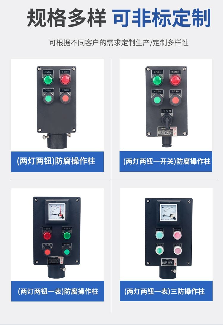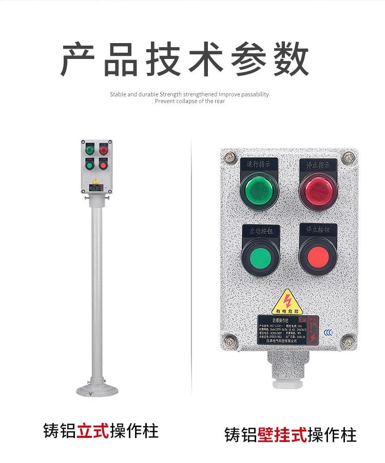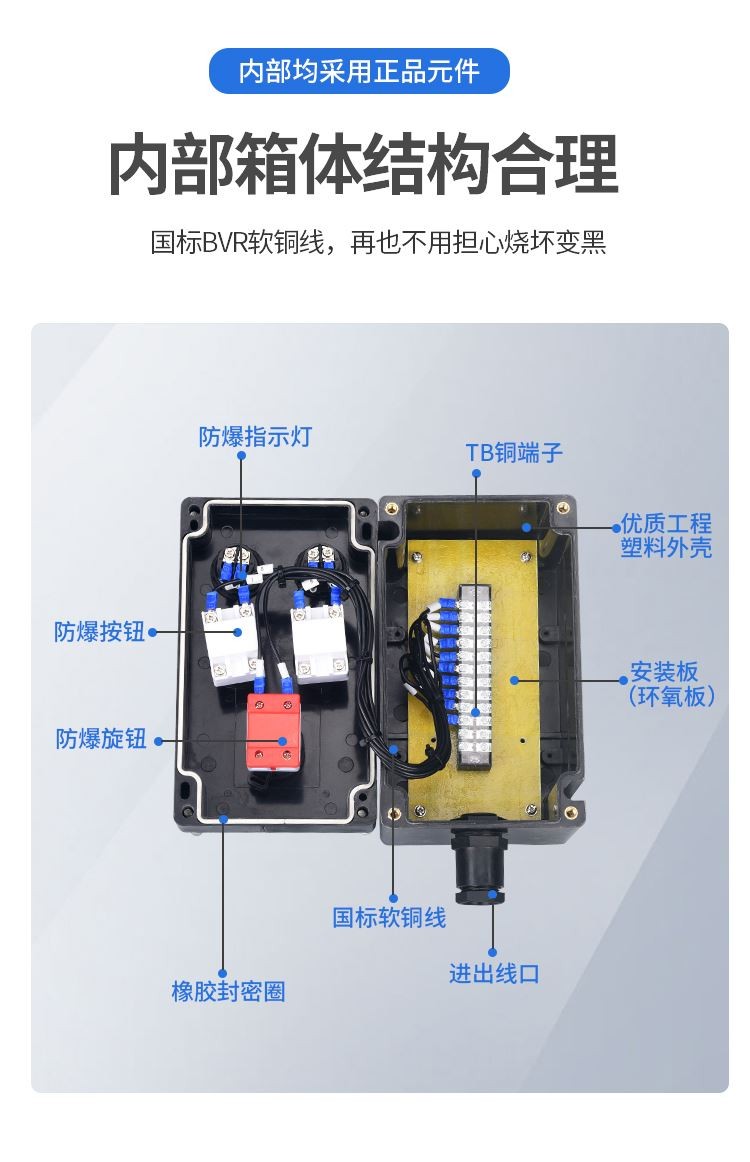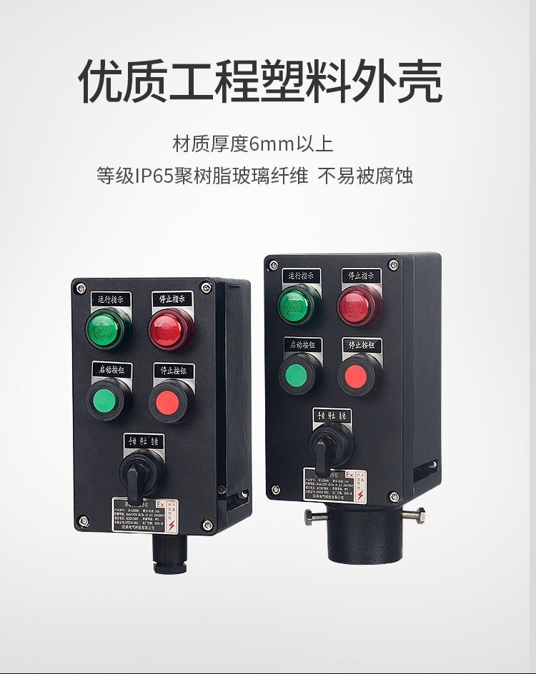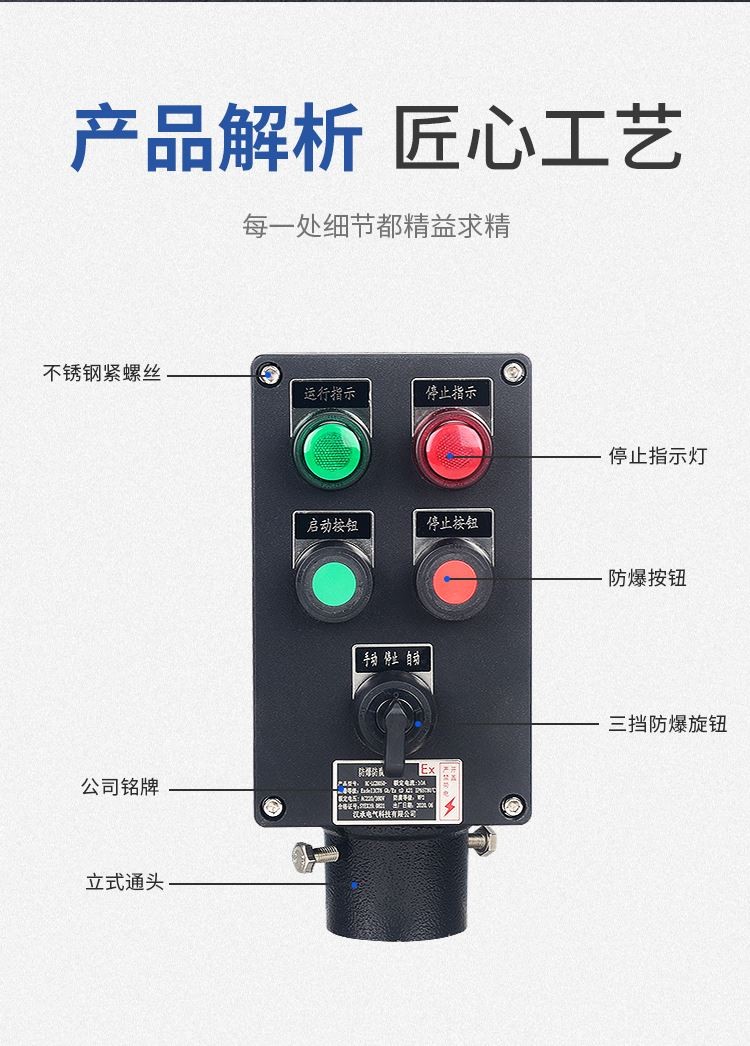 3.增安型防爆外殼,內裝按鈕、指示燈、電表及轉換開關等防爆元件,防爆性能可靠;