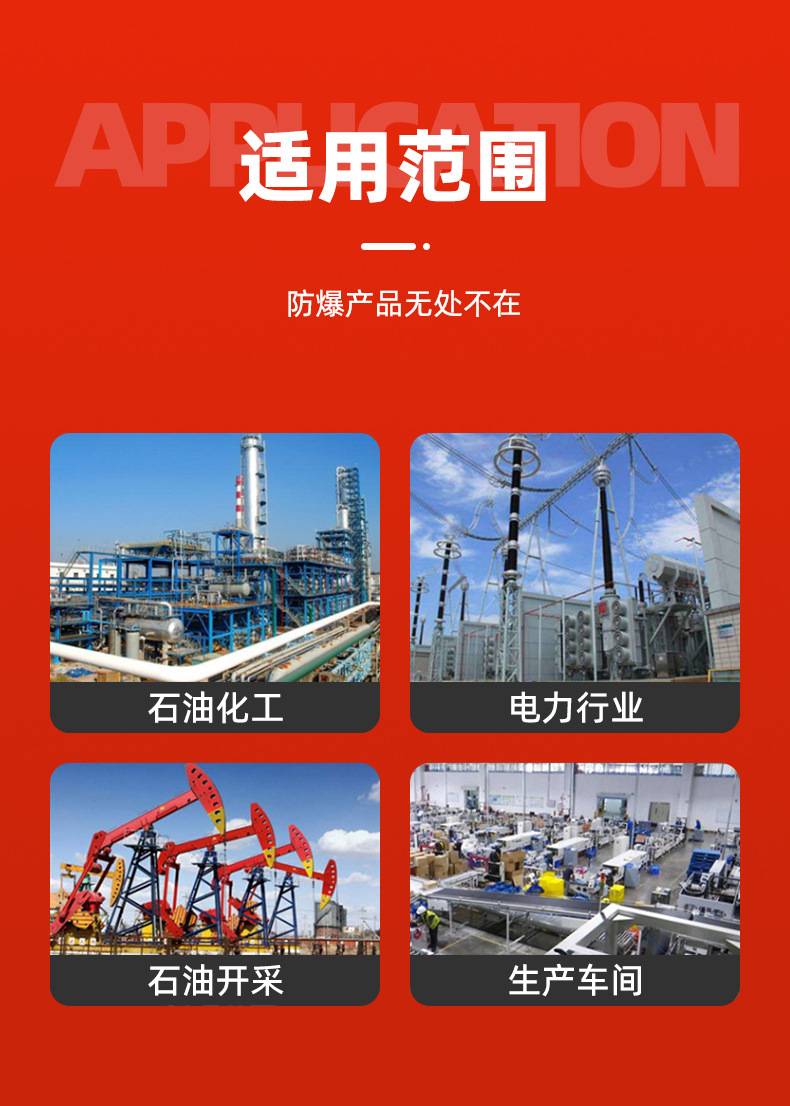 5.適用于石油采煉、儲存、化工、醫藥、紡織、印染、軍工及軍事設施等爆炸性危險環境
