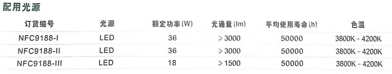 1、NFC9188-I. NFC9188-II,采用高透光率材料, 專業的配光設計和導光技術,光線均勻柔和。