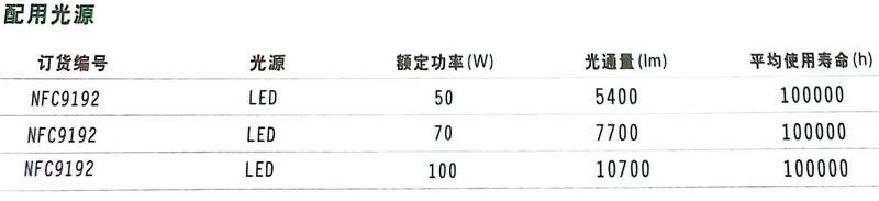 NFC9192 LED平臺燈 技術參數: