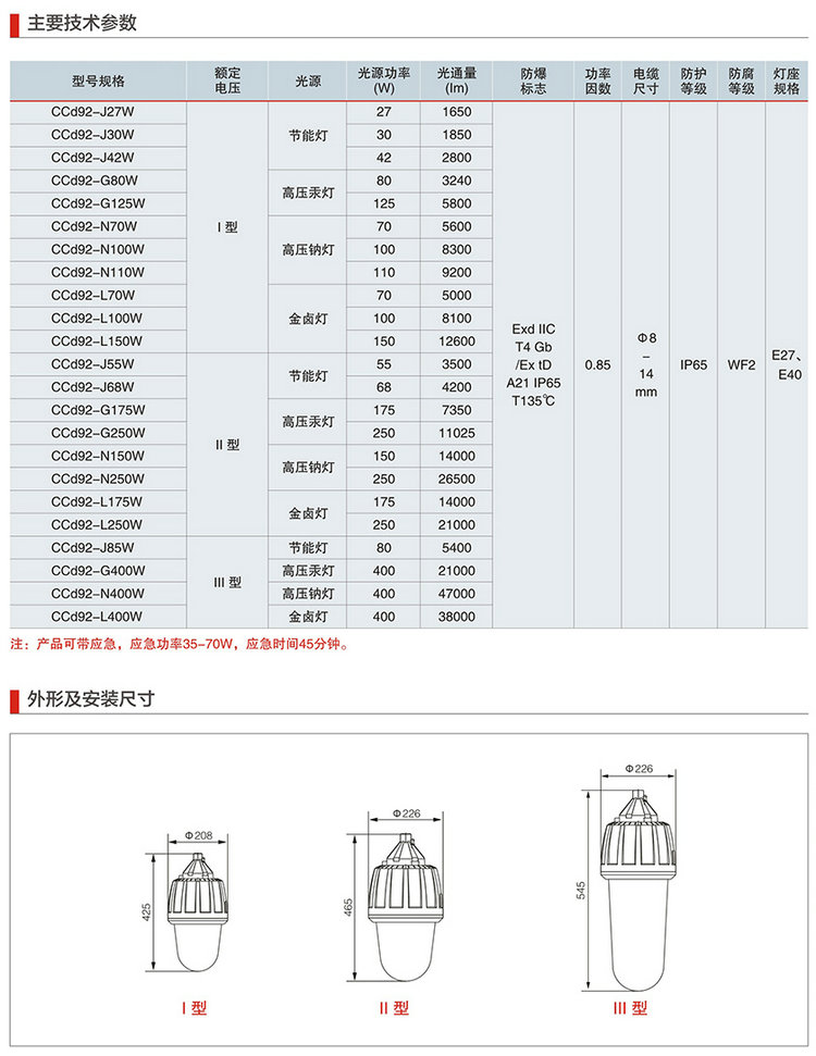 CCd92系列防爆照明燈(ⅡC) 產品特點